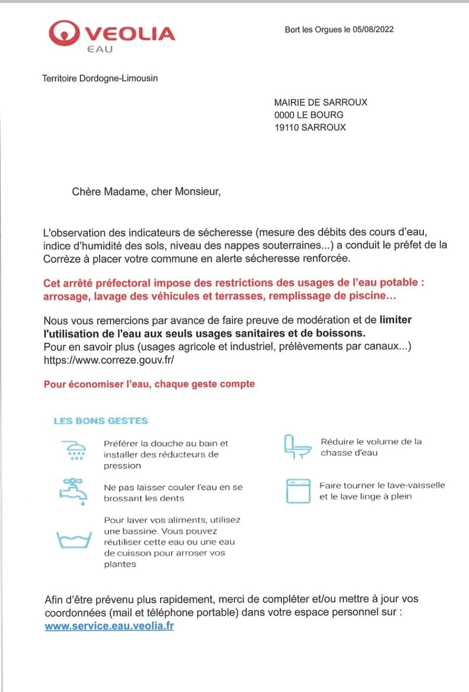 Restriction des usages de l'eau potable