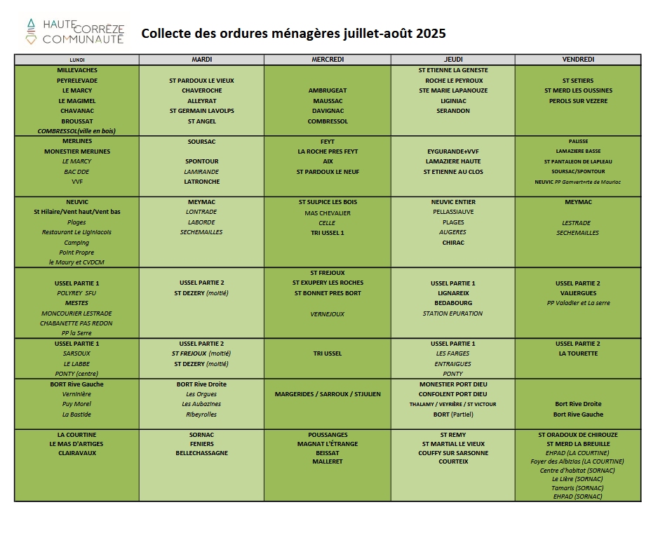 Collecte des ordures ménagères Juillet-Aout