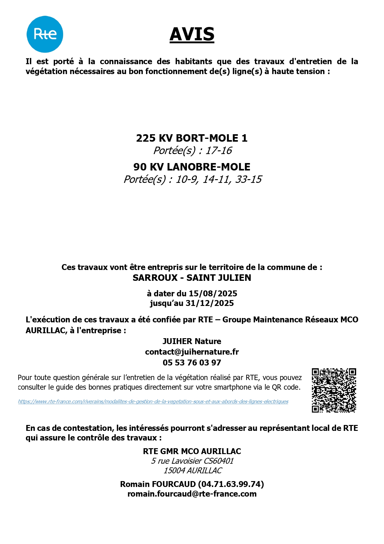 Travaux d'entretien de la végétation des lignes à haute tension.